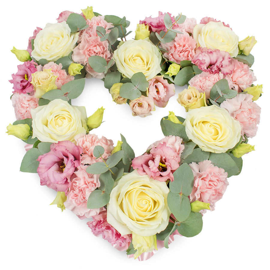 Convey your heartfelt condolences with our Heavenly Tribute Floral Arrangement—a sophisticated blend of emotion and beauty. Featuring radiant white roses, charming pink carnations, elegant pink lisianthus, and crisp eucalyptus leaves, every flower is carefully hand-selected for peak freshness and vibrant color.